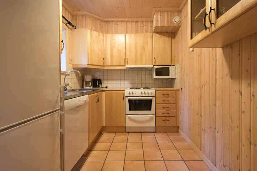 Opholdsstue med køkkenafdeling. TV, tørreskab, åben pejs (brænde indgår ikke), rum til skiudstyr, 1 barneseng, 1 højstol.