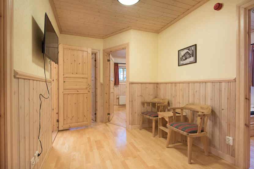 Timmerbyn ligger i Lindvallen. Lejlighed i 2 etager, 10 sengepladser, 100 m², alrum med køkkenafdeling, 4 soveværelser, 2 brusere, 3 WC, sauna.