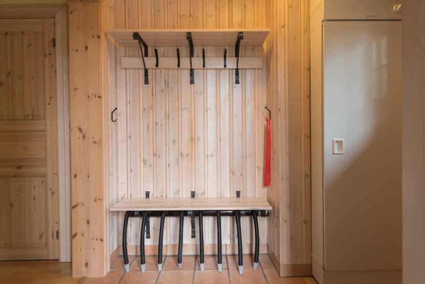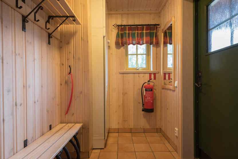 TV, tørreskab, 1 barneseng, 1 højstol, rum til skiudstyr.