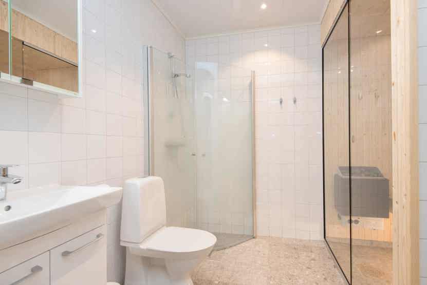 Køkkenet indeholder: keramiske kogeplader, kombiugn med microovn, opvaskemaskine, køleskab, frys.