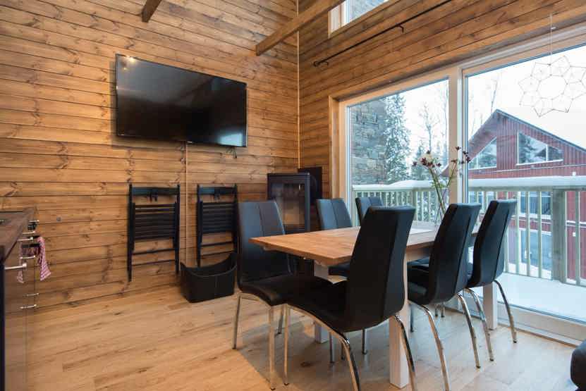 TV, brændeovn (brænde indgår ikke), tørreskab, balkon, udtag til motorvarmer til bilen forefindes. Kræver specielt stik i bilen.