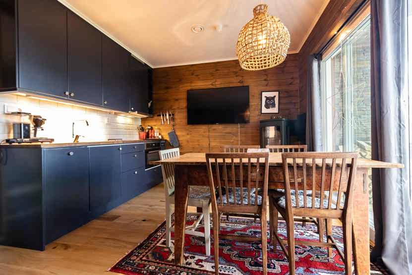 Køkkenet indeholder: keramiske kogeplader, kombiugn med microovn, opvaskemaskine, køleskab, frys.
