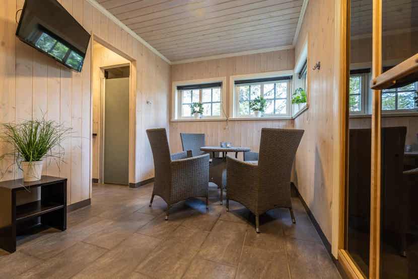 Badeværelset-1 = afslapningsrum med sauna, wc og 2 x bruse. Badeværelset-2 = wc. Badeværelset-3 = wc. Badeværelset-4 = bruse/wc.
