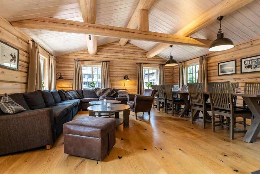 Timmerbyn Top ligger i Lindvallen. fritstående hytte i 2 etager, 14 sengepladser, 162 m², alrum med køkkenafdeling, 5 soveværelser, 3 brusere, 4 WC, sauna.