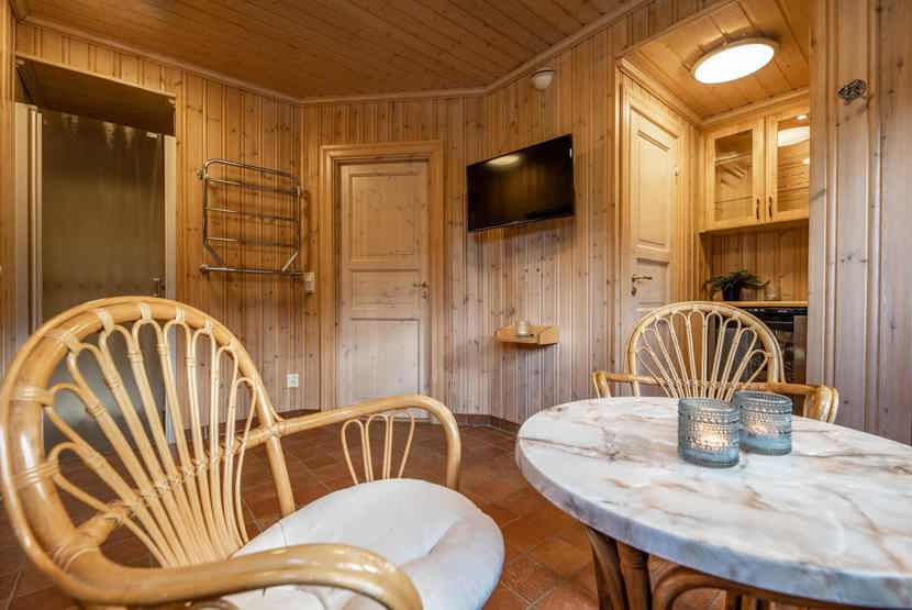 Badeværelset-1 = afslapningsrum med sauna, wc og 2 x bruse. Badeværelset-2 = wc. Badeværelset-3 = wc. Badeværelset-4 = bruse/wc.