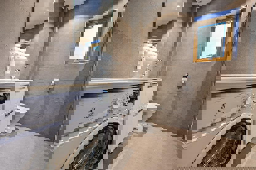 Badeværelset-1 = bruse/wc/sauna. Badeværelset-2 = bruse/wc. Badeværelset-3 = wc.