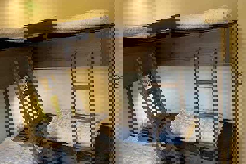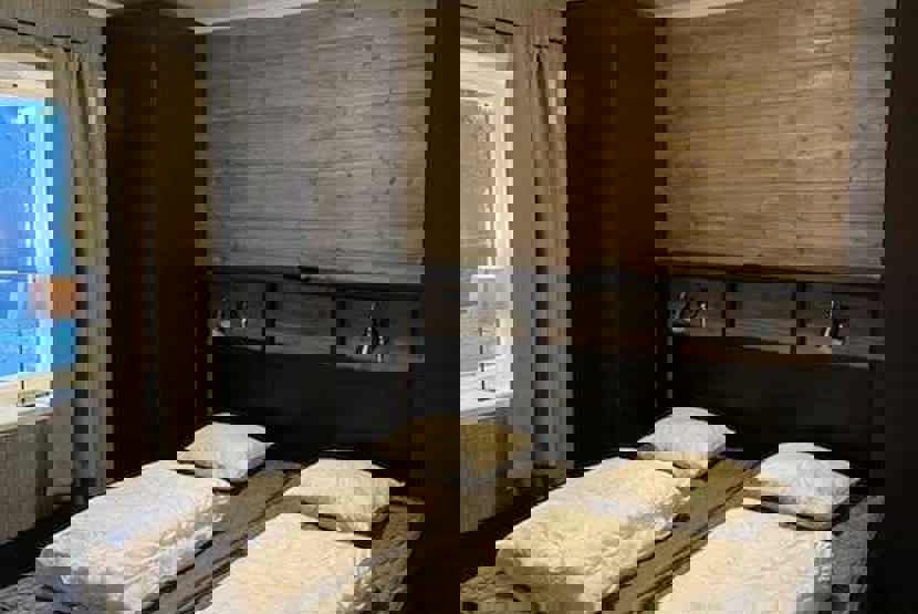 Soveværelse-1= 1 dobbeltseng 180 cm bred. Soveværelse-2= 1 dobbeltseng 180 cm bred. Soveværelse-3= 1 køjeseng hvor både over og underkøje er 90 cm bred, 1 køyeseng med 120 cm bred underkøye og 90 cm bred overkøye.
