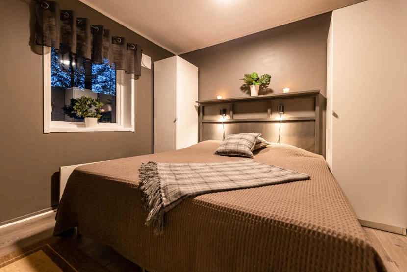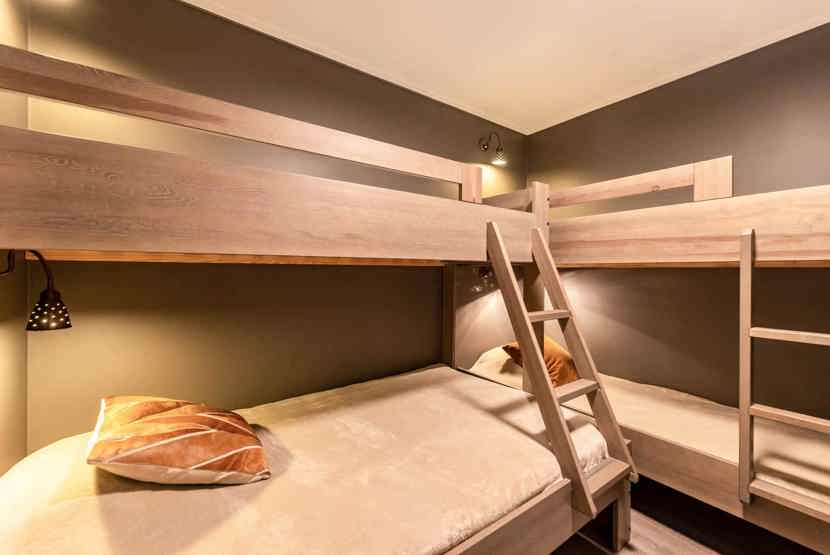Soveværelse-1= 1 dobbeltseng 180 cm bred. Soveværelse-2= 1 køjeseng, 1 køyeseng med 120 cm bred underkøye og 80 cm bred overkøye. Soveværelse-3= 1 dobbeltseng 180 cm bred.