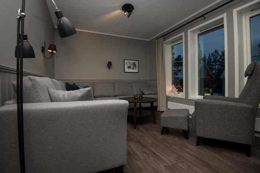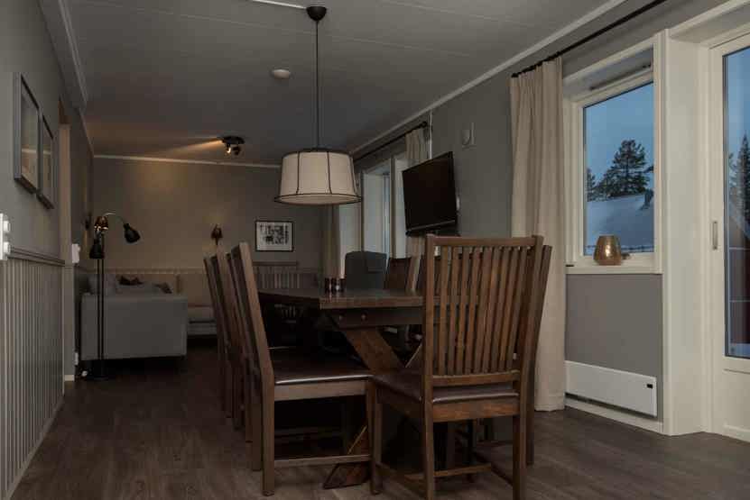Opholdsstue med køkkenafdeling. TV, tørreskab, rum til skiudstyr.