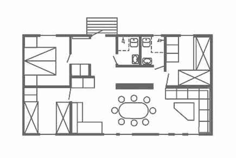 Soveværelse-1= 1 dobbeltseng. Soveværelse-2= 2 køjesenge. Soveværelse-3= 1 køjeseng, 1 køjeseng.