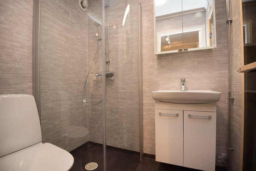 Badeværelset-1 = 1 bruse/wc. Badeværelset-2 = 1 bruse/wc/sauna.