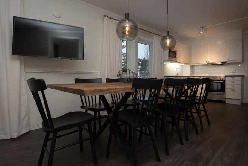 Opholdsstue med køkkenafdeling. TV, tørreskab, rum til skiudstyr.
