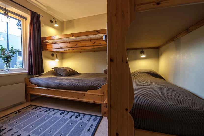 Soveværelse-1= 1 dobbeltseng. Soveværelse-2= 2 køjesenge. Soveværelse-3= 1 køjeseng, 1 køjeseng.