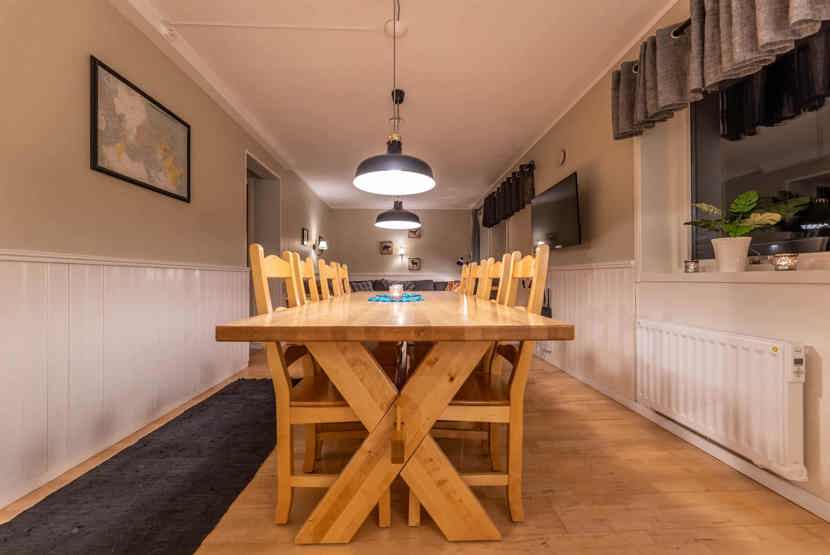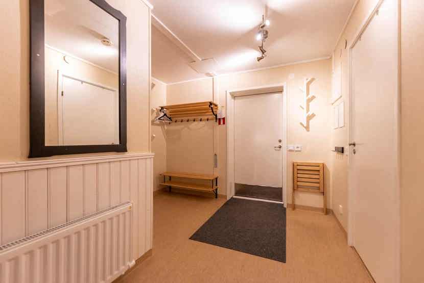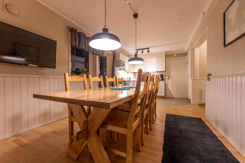 Opholdsstue med køkkenafdeling. TV, tørreskab, rum til skiudstyr.