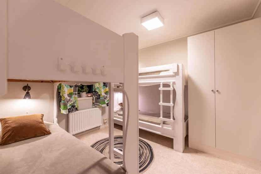 Soveværelse-1= 1 dobbeltseng. Soveværelse-2= 2 køjesenge. Soveværelse-3= 1 køjeseng, 1 køjeseng.