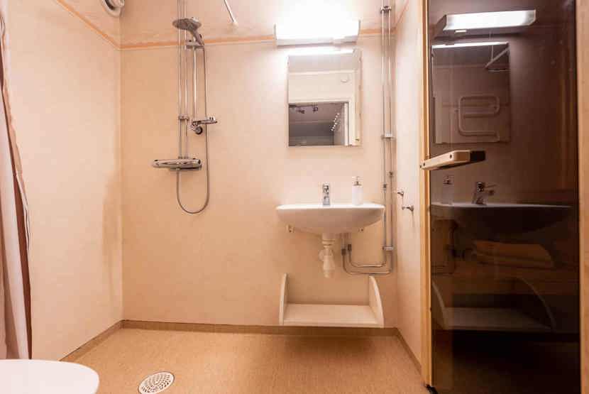 Badeværelset-1 = 1 bruse/wc. Badeværelset-2 = 1 bruse/wc/sauna.