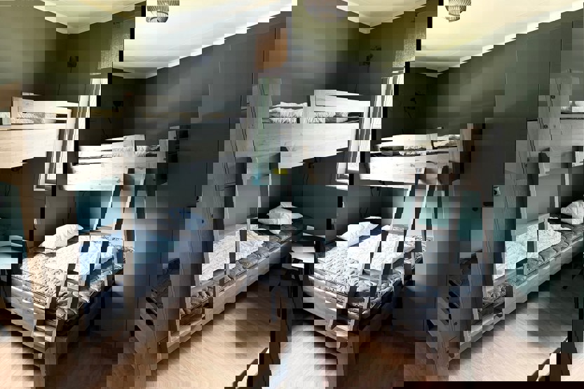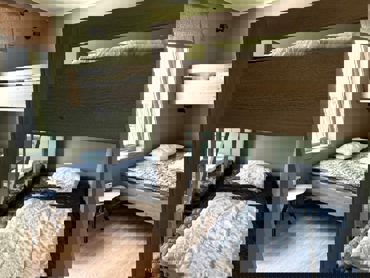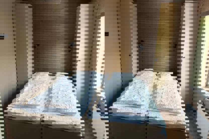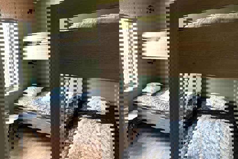 Soveværelse-1= 1 dobbeltseng. Soveværelse-2= 2 køjesenge. Soveværelse-3= 1 køjeseng, 1 køjeseng.