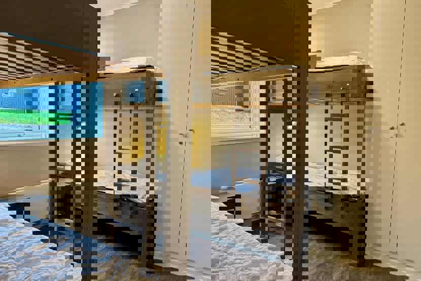 Soveværelse-1= 1 dobbeltseng. Soveværelse-2= 2 køjesenge. Soveværelse-3= 1 køjeseng, 1 køjeseng.