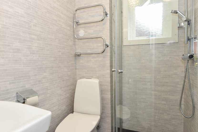 Badeværelset-1 = 1 bruse/wc. Badeværelset-2 = 1 bruse/wc/sauna.