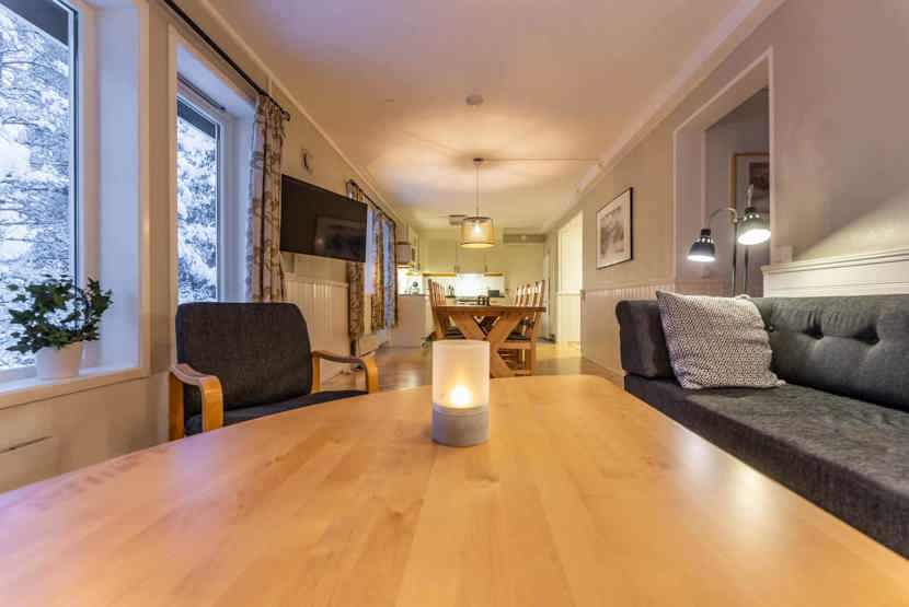 Vasabyn ligger i Lindvallen. 1. sals lejlighed, 8 sengepladser, 72 m², alrum med køkkenafdeling, 3 soveværelser, 2 brusere, 2 WC, sauna.