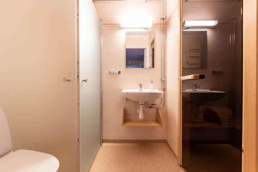 Badeværelset-1 = 1 bruse/wc/sauna. Badeværelset-2 = 1 bruse/wc.