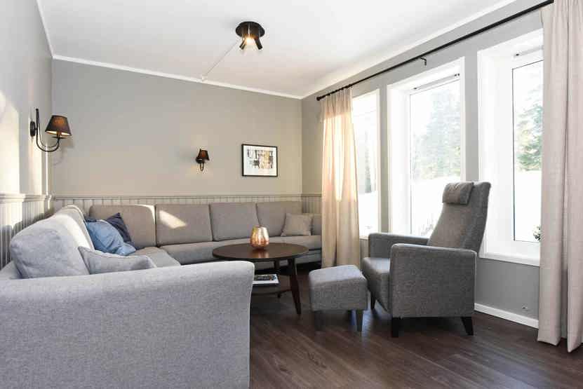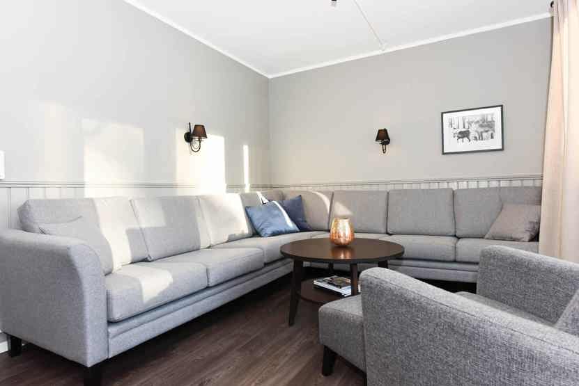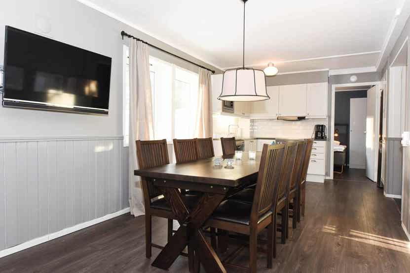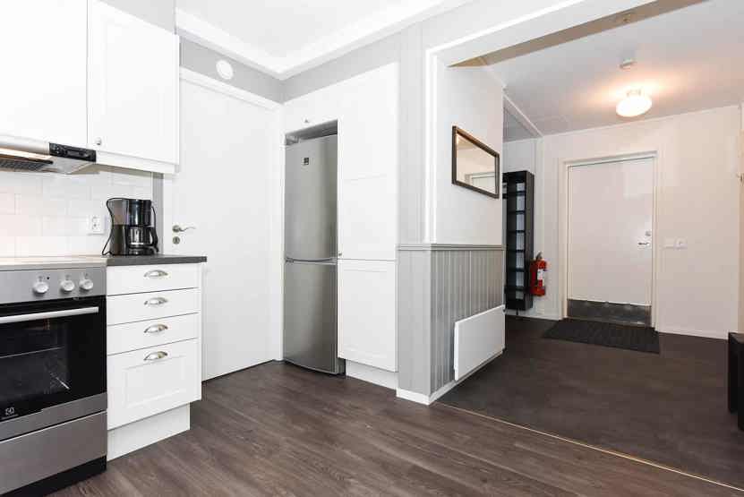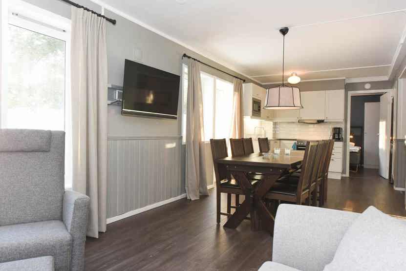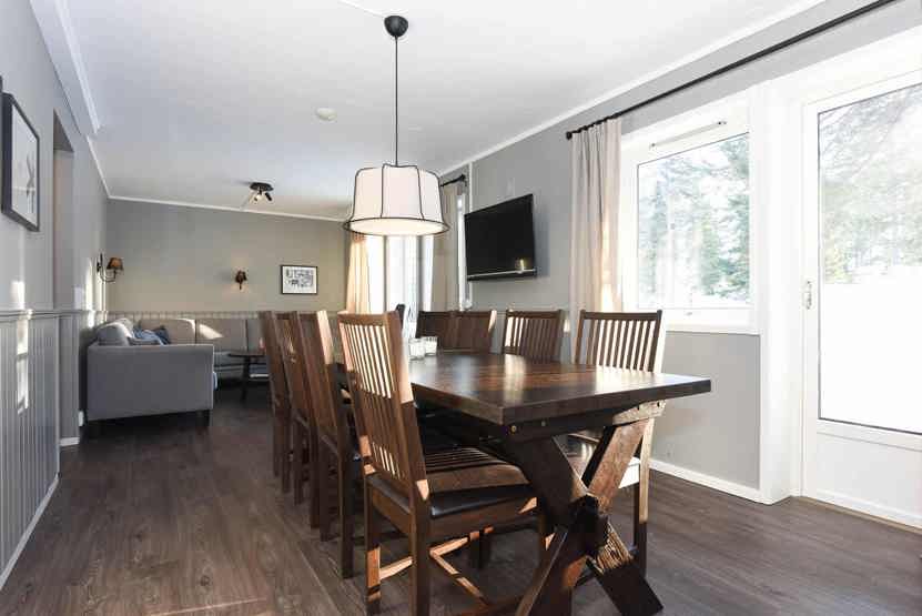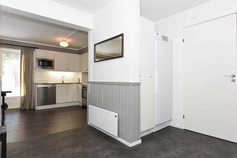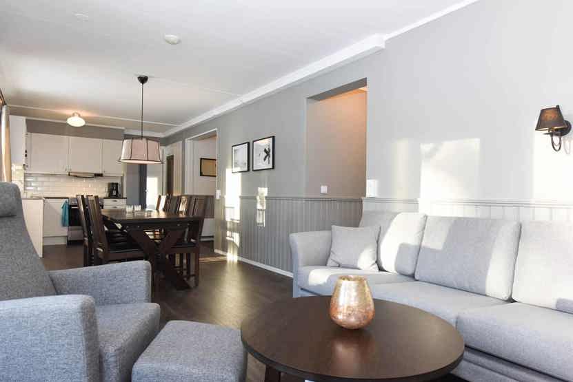 Opholdsstue med køkkenafdeling. TV, tørreskab, rum til skiudstyr.