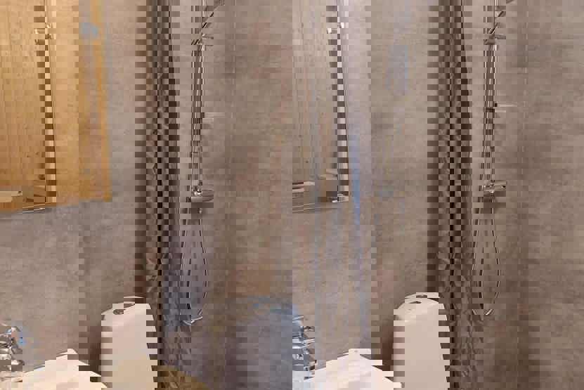 Badeværelset-1 = 1 bruse/wc/sauna. Badeværelset-2 = 1 bruse/wc.