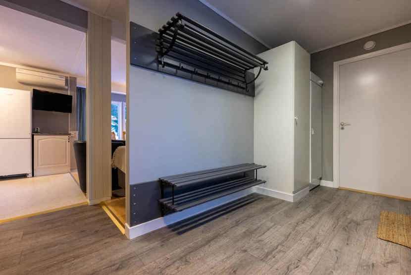 TV, tørreskab, 1 højstol, 1 barneseng, rum til skiudstyr.