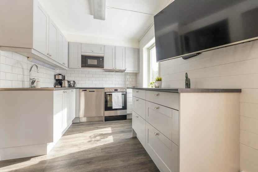 TV, tørreskab, 1 højstol, 1 barneseng, rum til skiudstyr, havem¢bler.