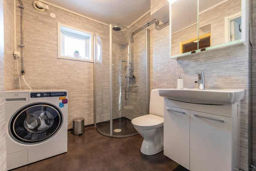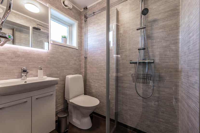Badeværelset-1 = 1 bruse/wc/sauna. Badeværelset-2 = 1 bruse/wc.