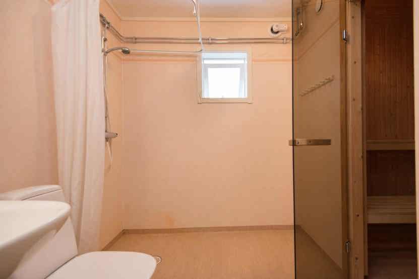 Badeværelset-1 = 1 bruse/wc/sauna. Badeværelset-2 = 1 bruse/wc.