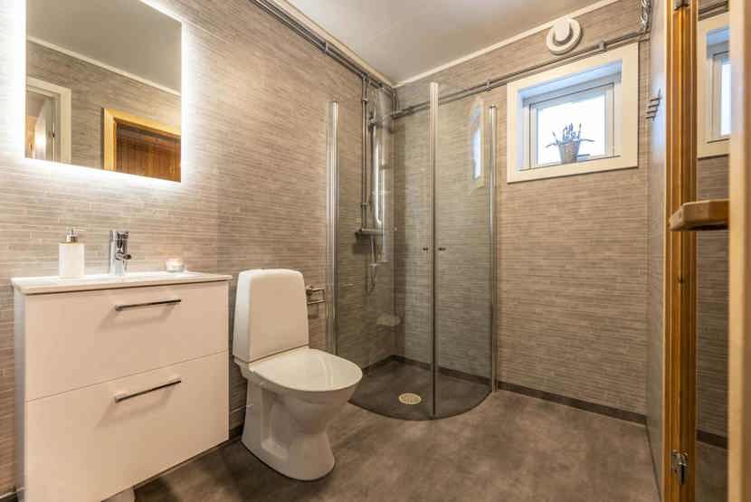 Badeværelset-1 = 1 bruse/wc/sauna. Badeværelset-2 = 1 bruse/wc.