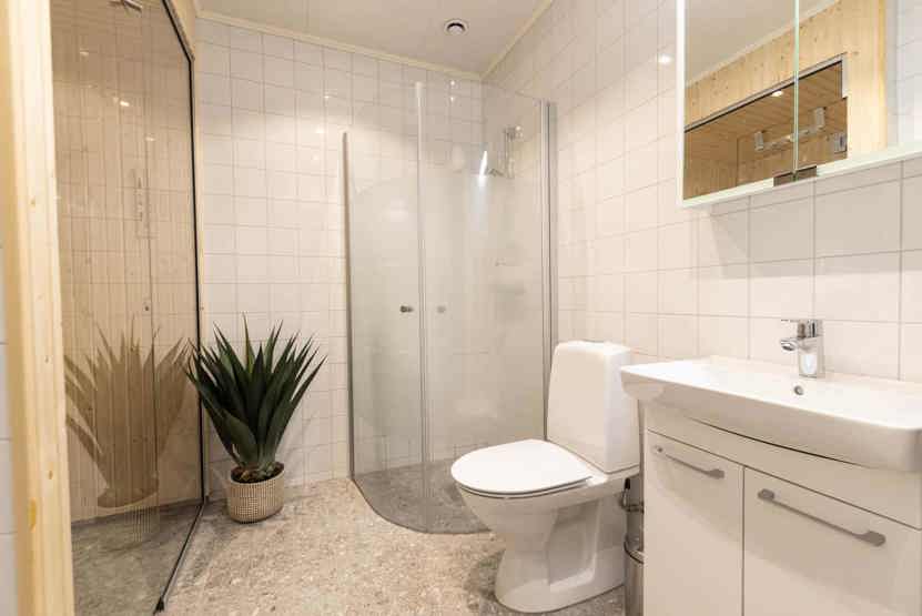 Badeværelset-1 = bruse/wc. Badeværelset-2 = bruse/wc/sauna.