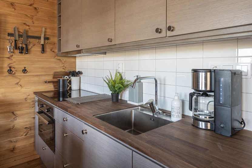 Køkkenet indeholder: keramiske kogeplader, kombiugn med microovn, køleskab, frys, opvaskemaskine.