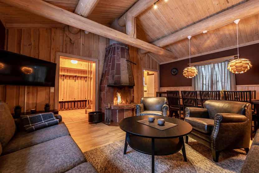 Opholdsstue med køkkenafdeling. TV, tørreskab, åben pejs (brænde indgår ikke), rum til skiudstyr, 1 barneseng, 1 højstol.