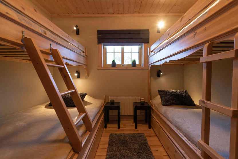Soveværelse-1= 1 dobbeltseng. Soveværelse-2= 1 køjeseng. Soveværelse-3= 1 køjeseng. Soveværelse-4= 1 køjeseng, 1 køjeseng.