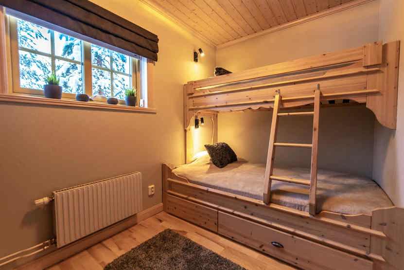 Soveværelse-1= 1 dobbeltseng. Soveværelse-2= 1 køjeseng. Soveværelse-3= 1 køjeseng. Soveværelse-4= 1 køjeseng, 1 køjeseng.
