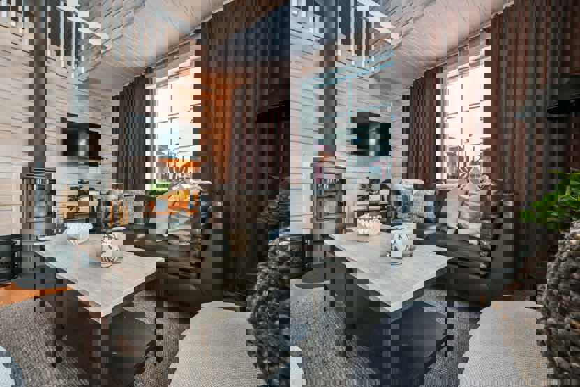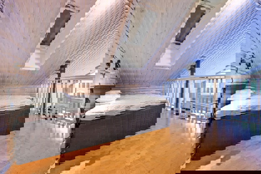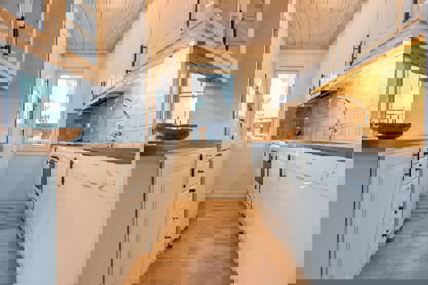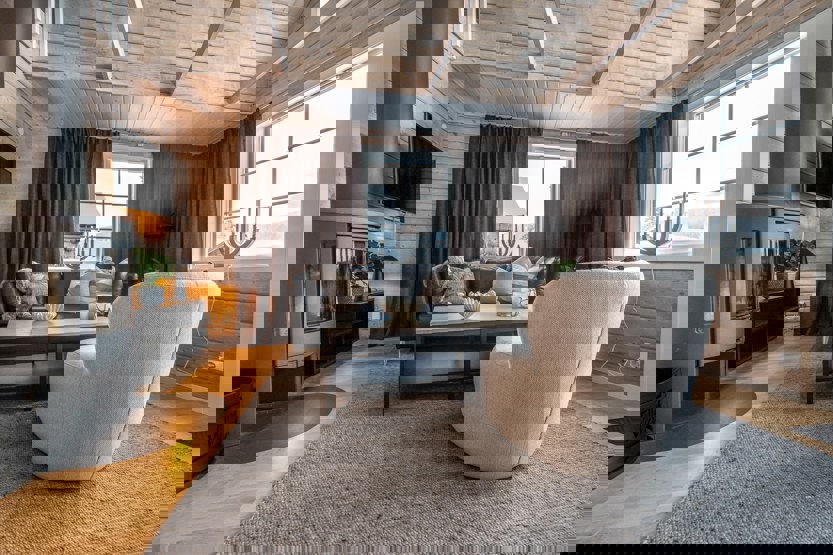 TV, brændeovn (brænde indgår ikke), vaskemaskine, tørreskab, altan (skovles ikke), rum til skiudstyr.