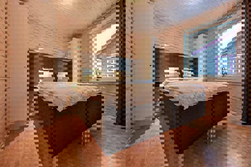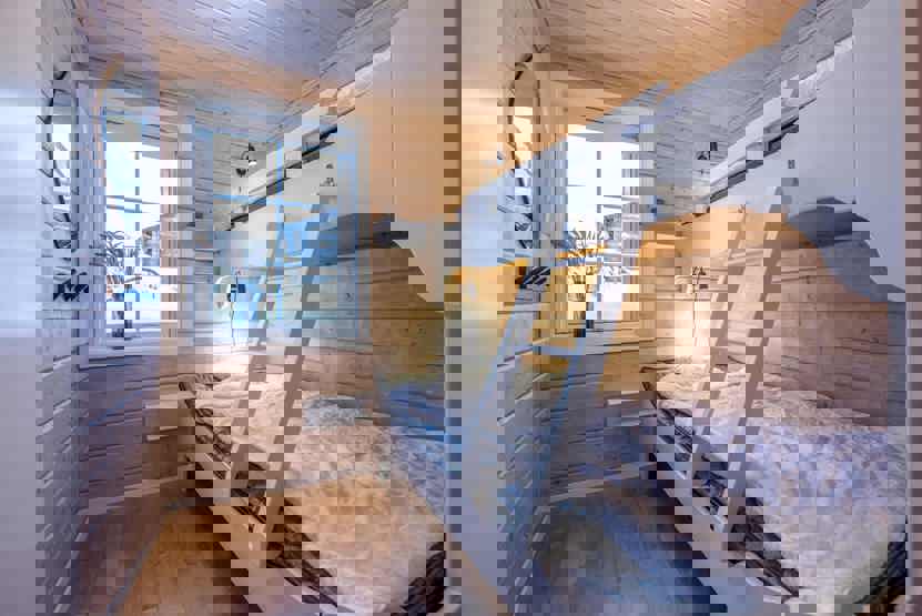 Soveværelse-1= 1 køjeseng. Soveværelse-2= 1 dobbeltseng. Soveværelse-3= på hemset, med 2 enkeltsenge.