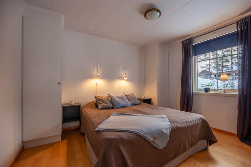 Soveværelse-1= 1 dobbeltseng. Soveværelse-2= 1 køjeseng med 120 cm bred underkøje . Soveværelse-3= på hemset, med 3 enkeltsenge.