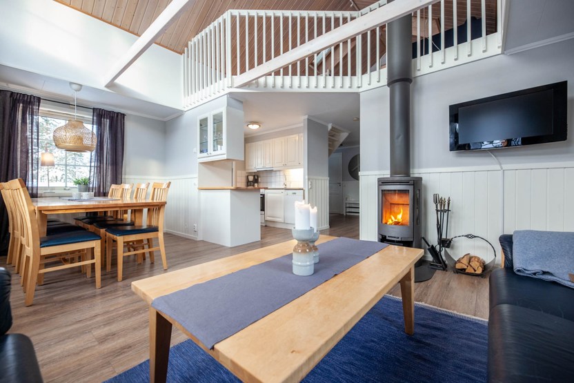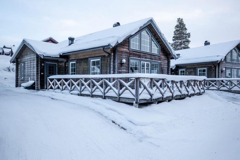 Horizon Lodge ligger ved Hundfjället. Fritstående hytte med hems, 7+1 sengepladser, 100 m², 3 soveværelser, 2 brusere, 2 WC, sauna.