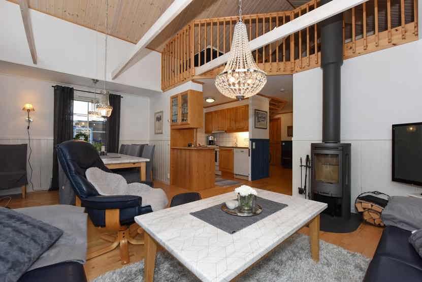 TV, brændeovn (brænde indgår ikke), altan (skovles ikke), vaskemaskine, tørreskab, rum til skiudstyr, skistøvletører.