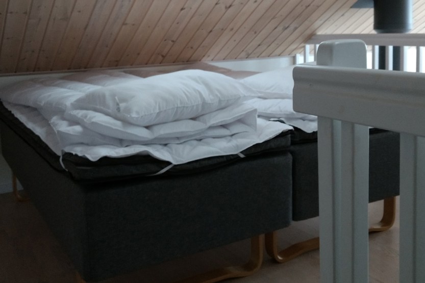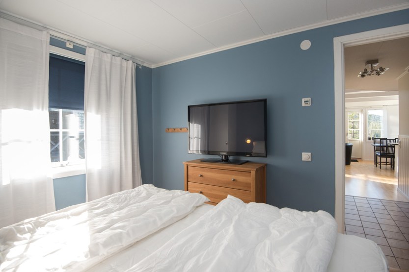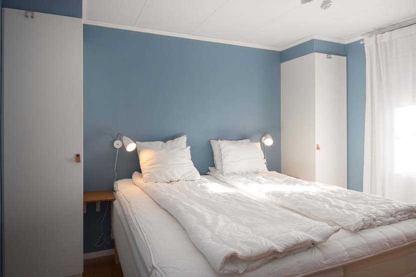 Soveværelse-1= 1 dobbeltseng. Soveværelse-2= 1 køjeseng med 120 cm bred underkøje . Soveværelse-3= på hemset, med 2 enkeltsenge.