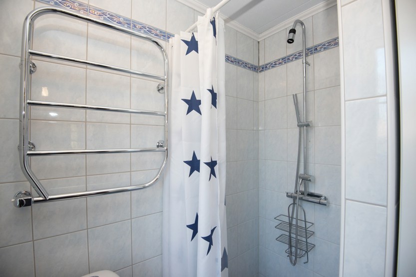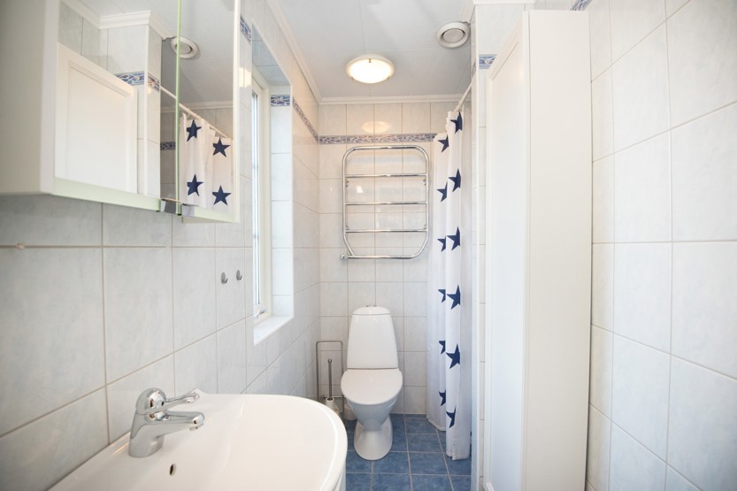 Badeværelset-1 = bruse/wc/sauna. Badeværelset-2 = bruse/wc.