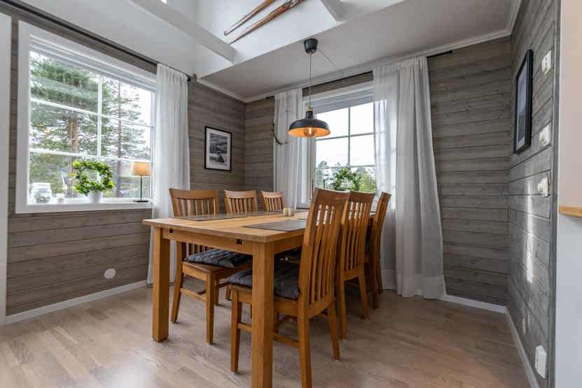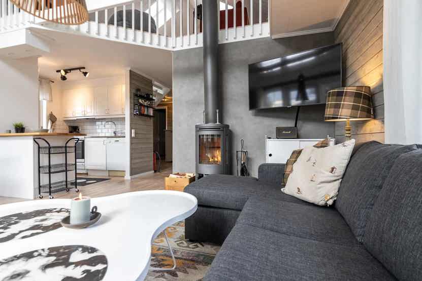 TV, brændeovn (brænde indgår ikke), tørreskab, vaskemaskine, altan (skovles ikke), rum til skiudstyr, udtag til motorvarmer til bilen forefindes. Kræver specielt stik i bilen.