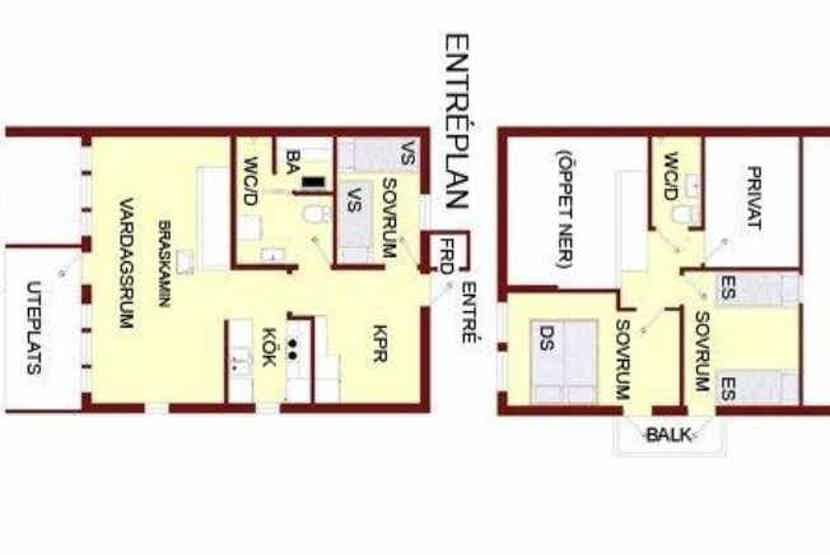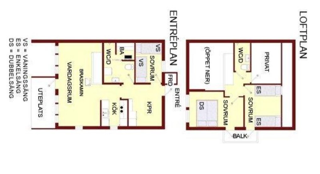 Badeværelset-1 = bruse/wc/sauna. Badeværelset-2 = bruse/wc.