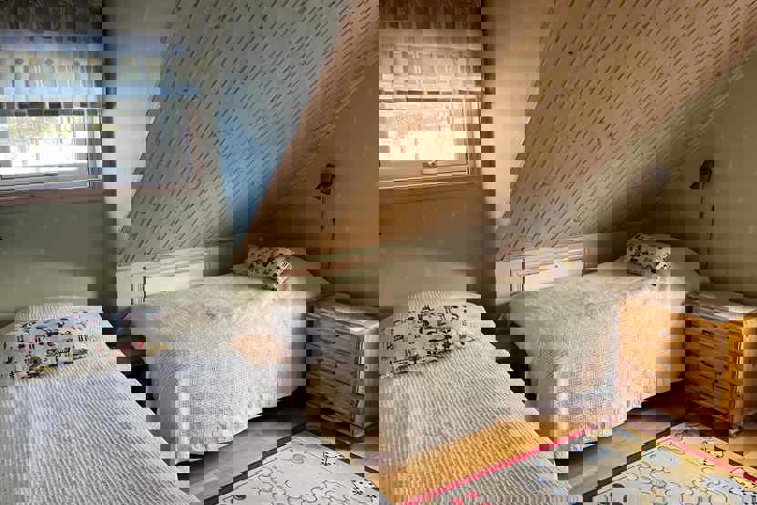 Soveværelse-1= 1 dobbeltseng. Soveværelse-2= 2 enkeltsenge. Soveværelse-3= 2 køjesenge.
