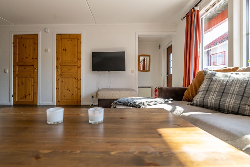 Opholdsstue med køkkenafdeling. TV, tørreskab, rum til skiudstyr, altan (skovles ikke).