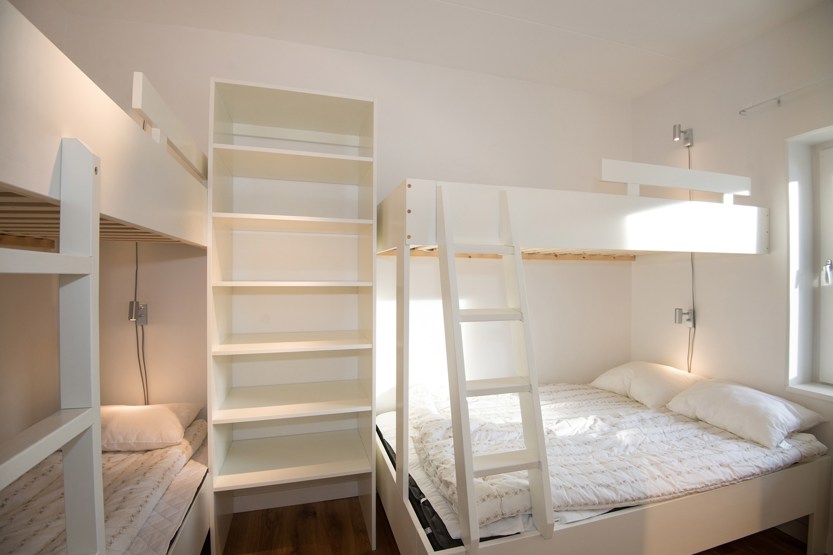 Soveværelse-1= 1 køjeseng med 120 cm bred underkøje , 1 køjeseng. Soveværelse-2= 1 køjeseng med 120 cm bred underkøje , 1 køjeseng.