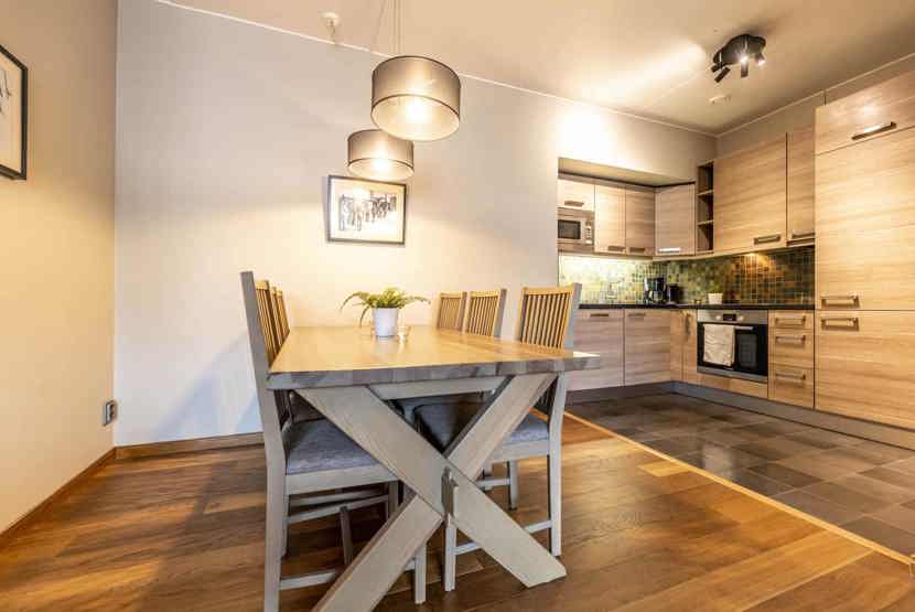TV, tørreskab, rum til skiudstyr, udeplads (skovles ikke), Adgang til sauna og vaskerum, elevator findes i huset, 2 parkeringspladser.